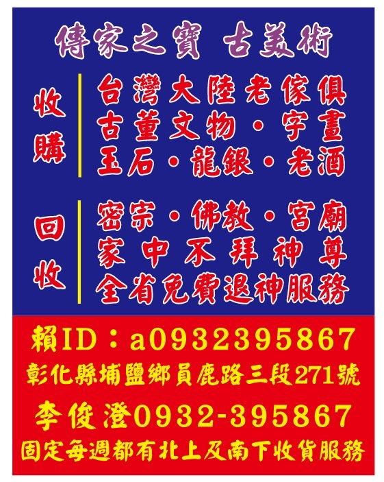 如果您有任何想要出售或詢問的物品,或者對我們的服務有任何疑問,請隨時聯繫我們。我們期待著與您合作,共同繼續保存和欣賞這些珍貴的藝術品。